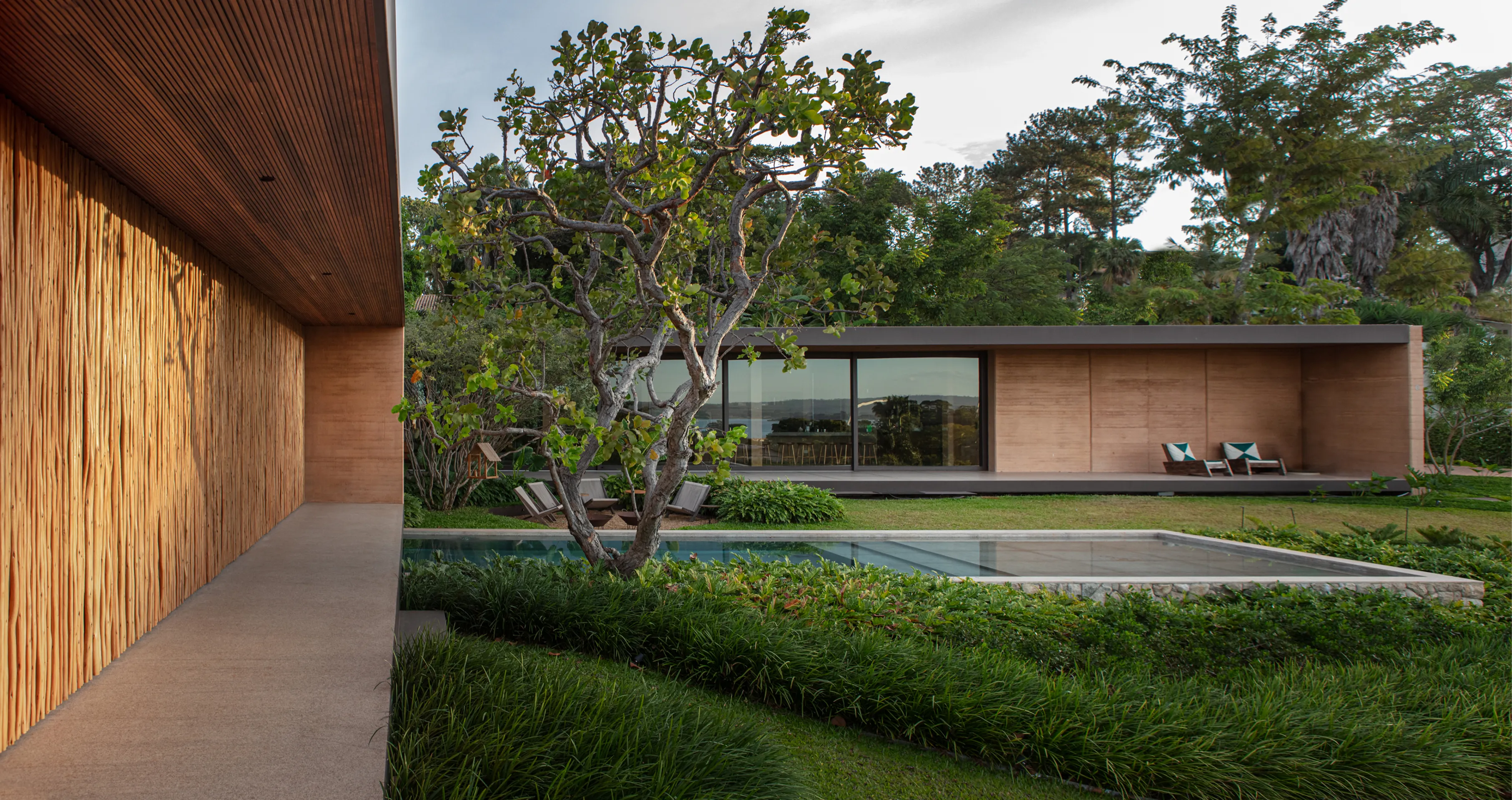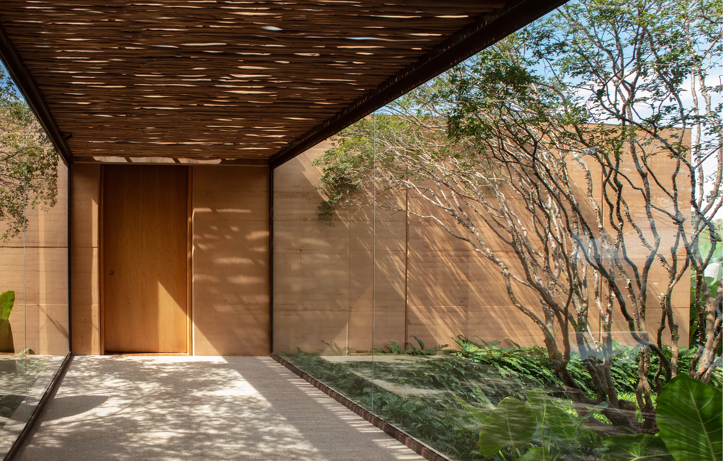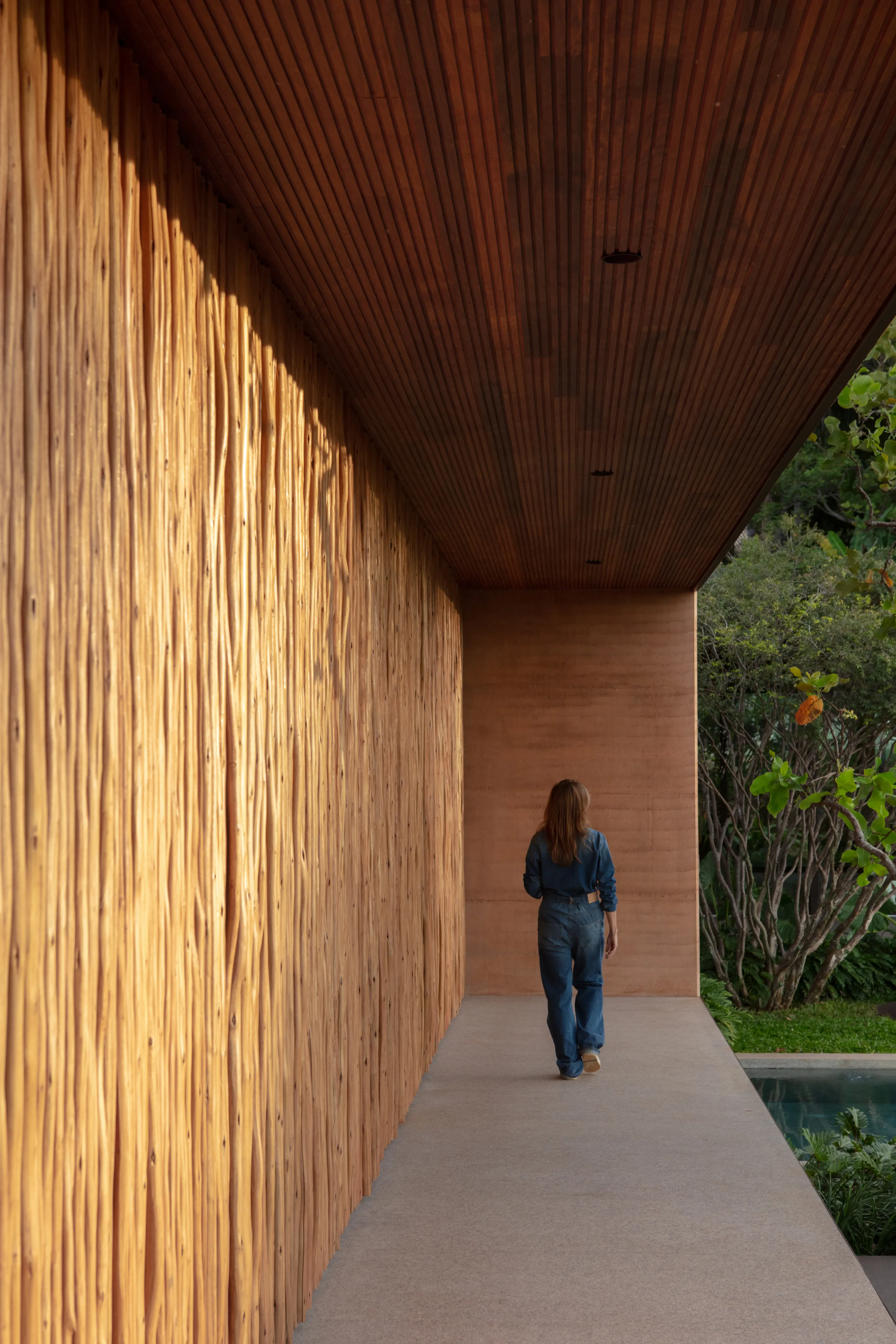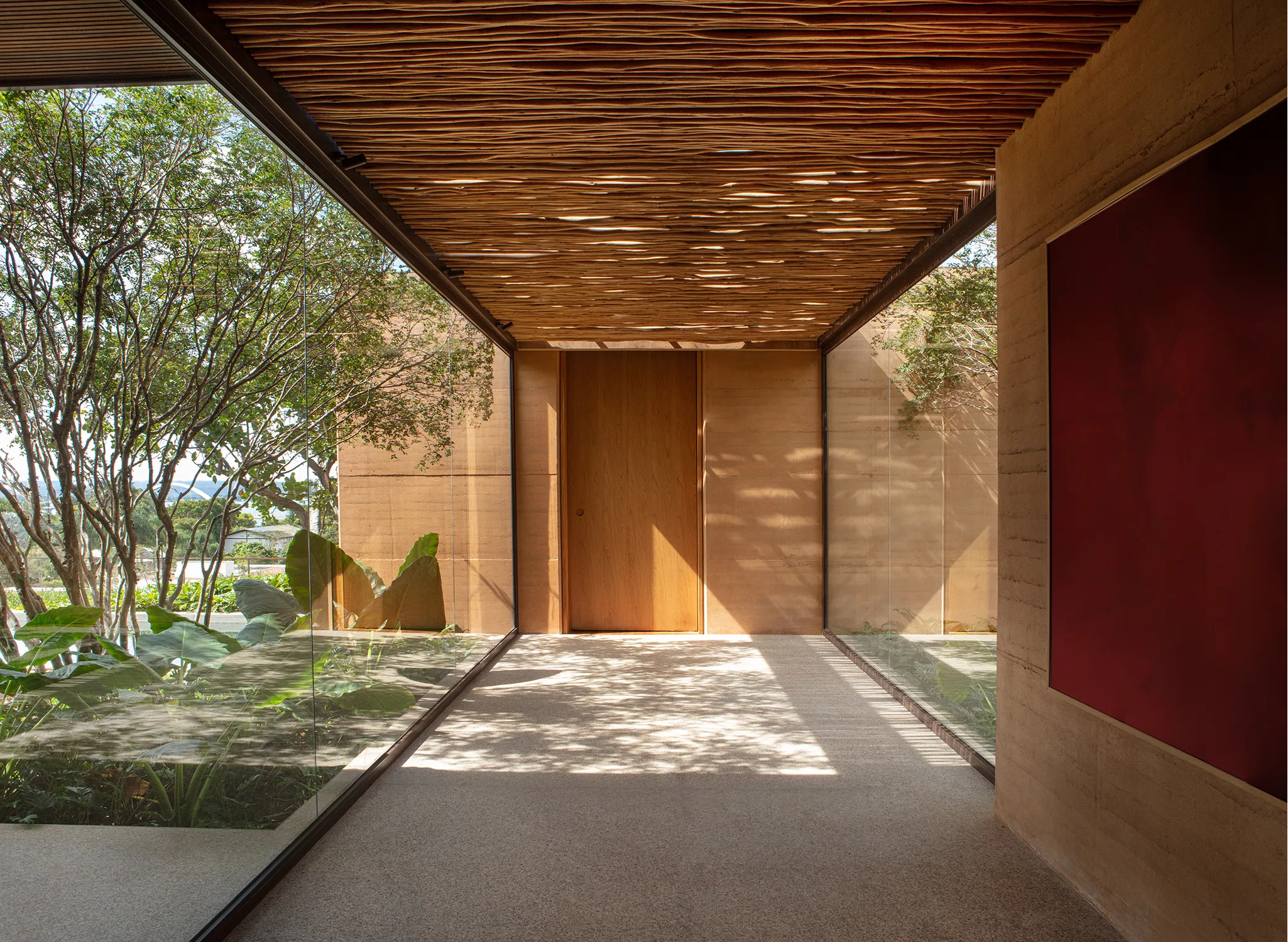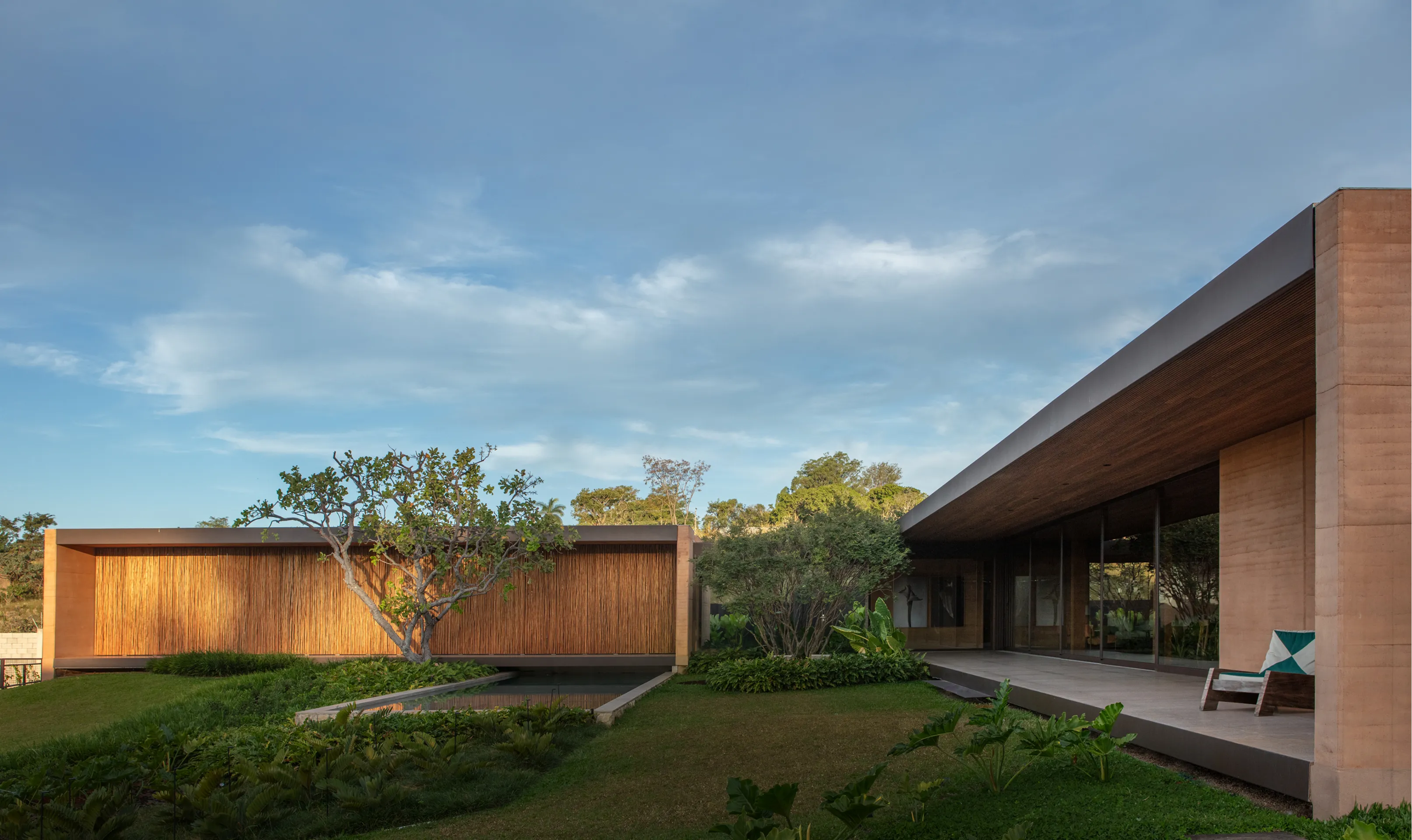 A liberdade criativa de Valéria Gontijo permitiu o projeto inovador e sustentável. O principal elemento arquitetônico do projeto é a "Taipa” como técnica de construção. Esse processo envolve a construção de paredes com terra compactada dentro de fôrmas de madeira. Essa técnica ancestral é também ecoeficiente, utilizando a terra do próprio terreno e ajudando a regular a temperatura interna do ambiente.