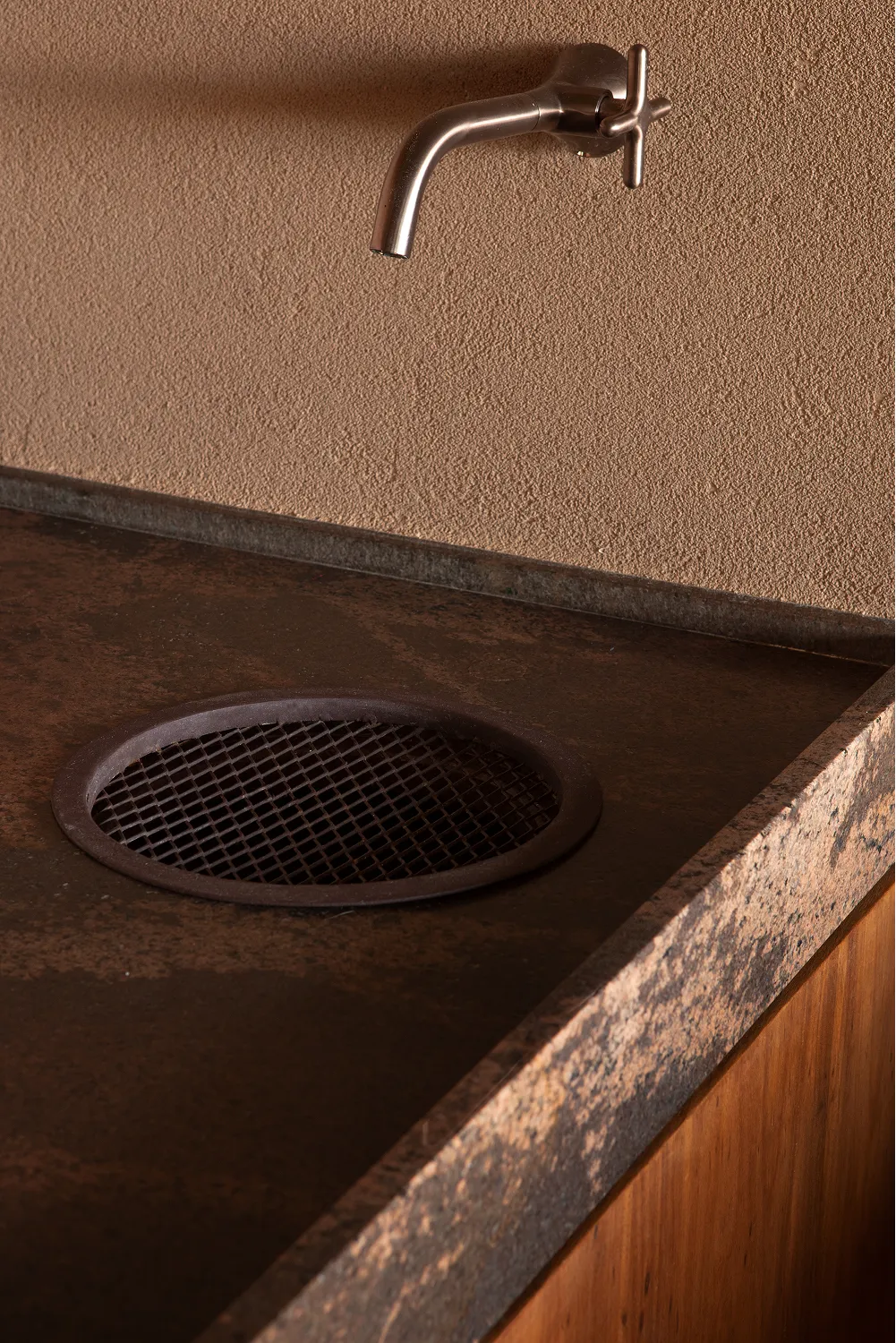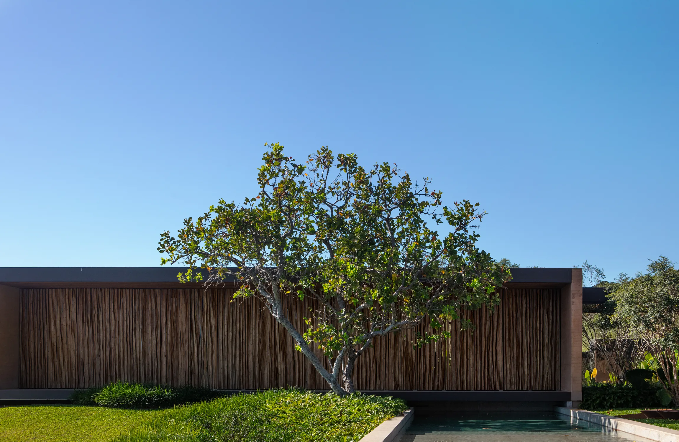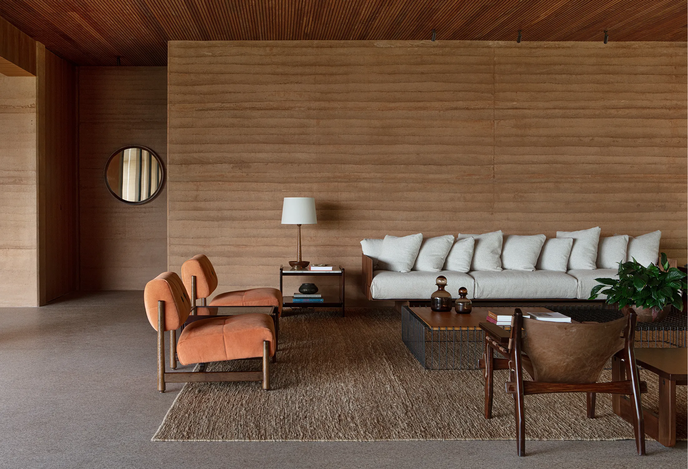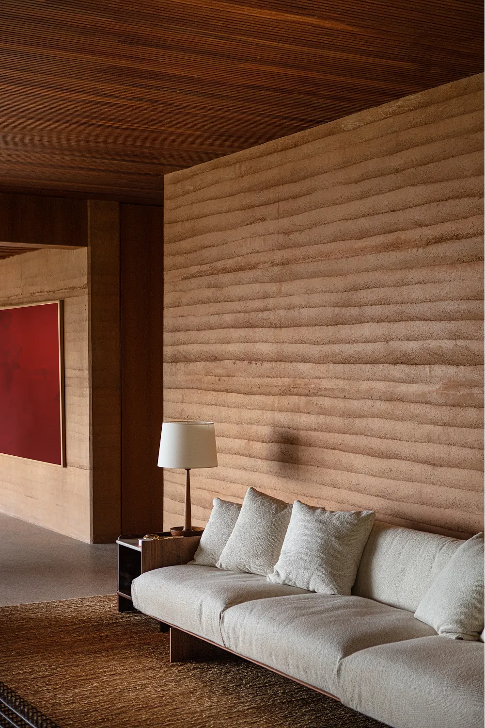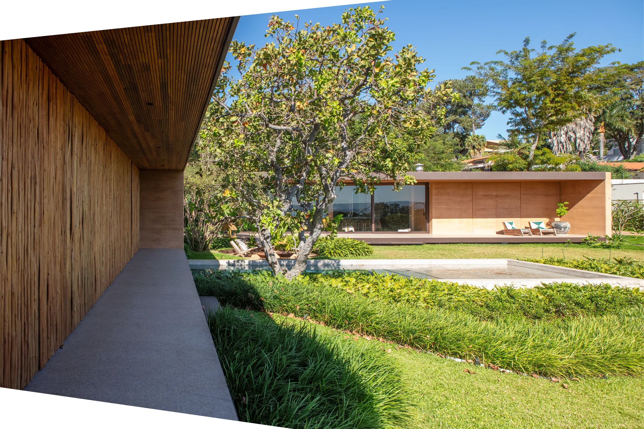 A liberdade criativa de Valéria Gontijo permitiu o projeto inovador e sustentável. O principal elemento arquitetônico do projeto é a "Taipa” como técnica de construção. Esse processo envolve a construção de paredes com terra compactada dentro de fôrmas de madeira. Essa técnica ancestral é também ecoeficiente, utilizando a terra do próprio terreno e ajudando a regular a temperatura interna do ambiente.