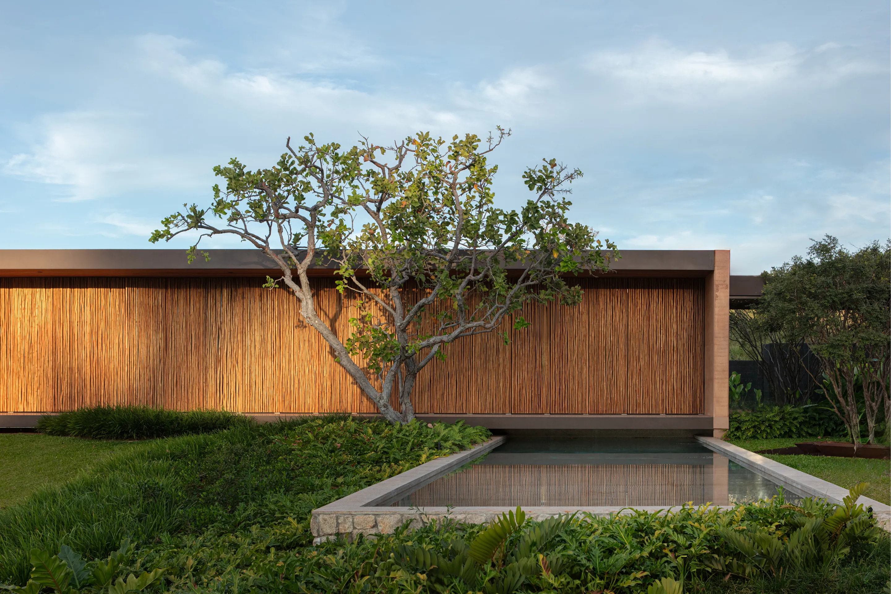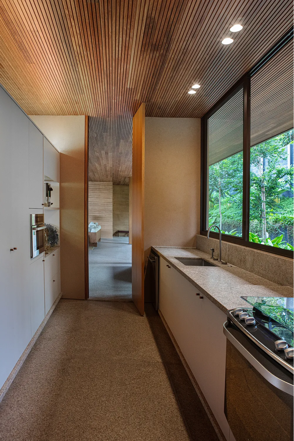 A pedido dos clientes, o programa reduzido proporcionou funcionalidade e permitiu o aproveitamento total dos espaços na Casa Taipa. Com 620m², a estrutura inclui duas suítes, uma sala de estar, uma área gourmet, uma cozinha, uma área de serviço, uma garagem para dois carros, uma varanda coberta e uma piscina.