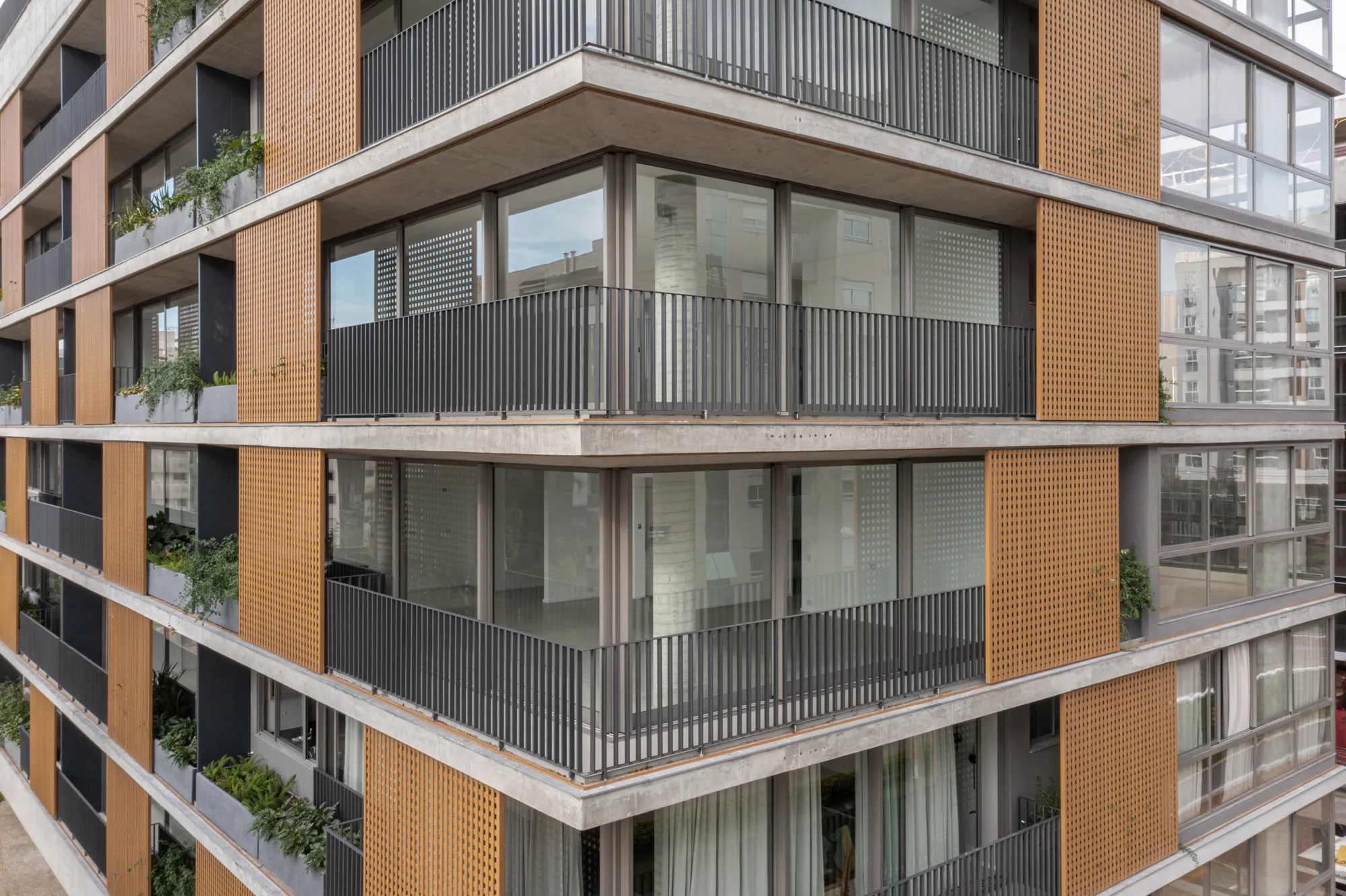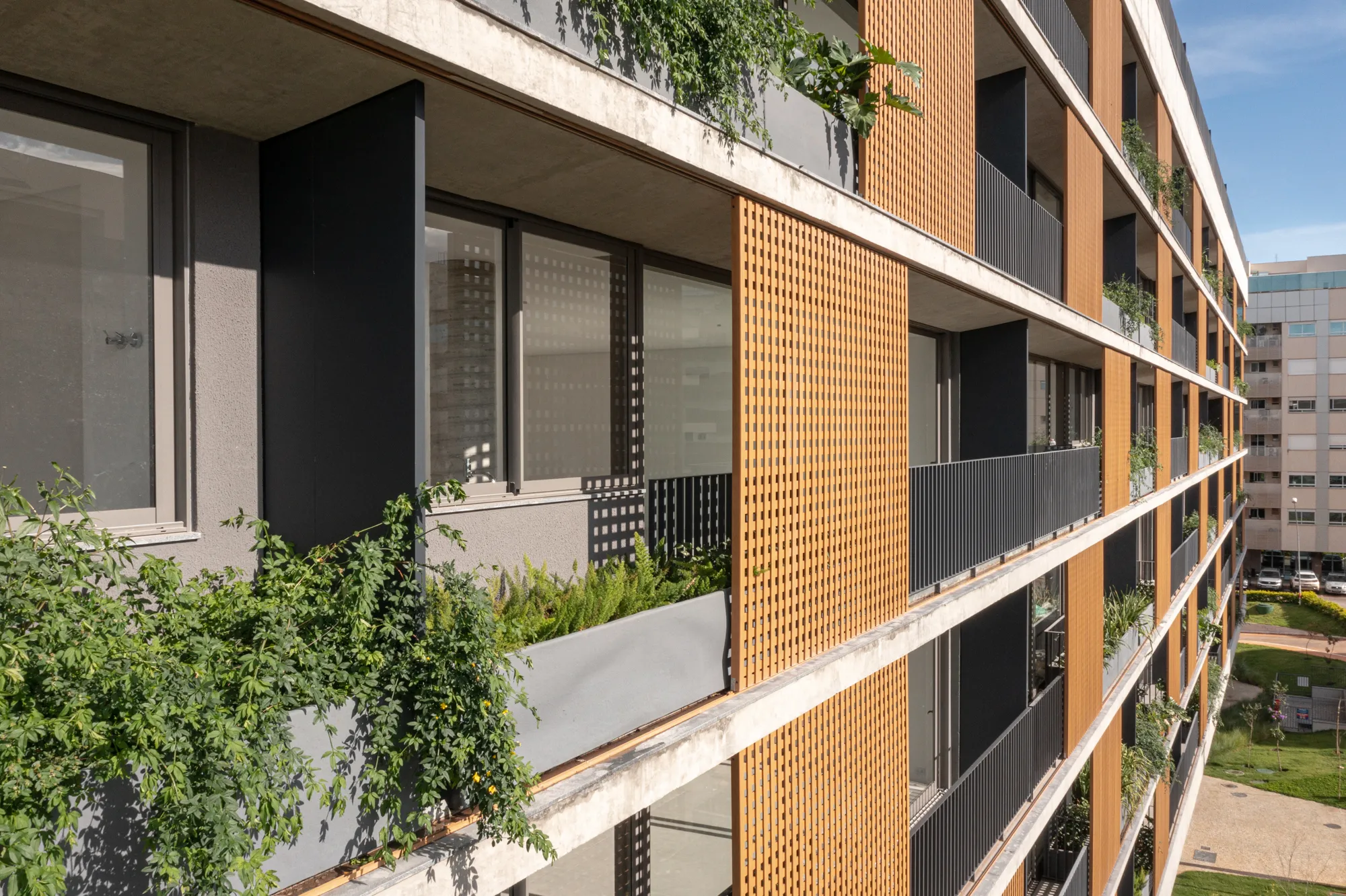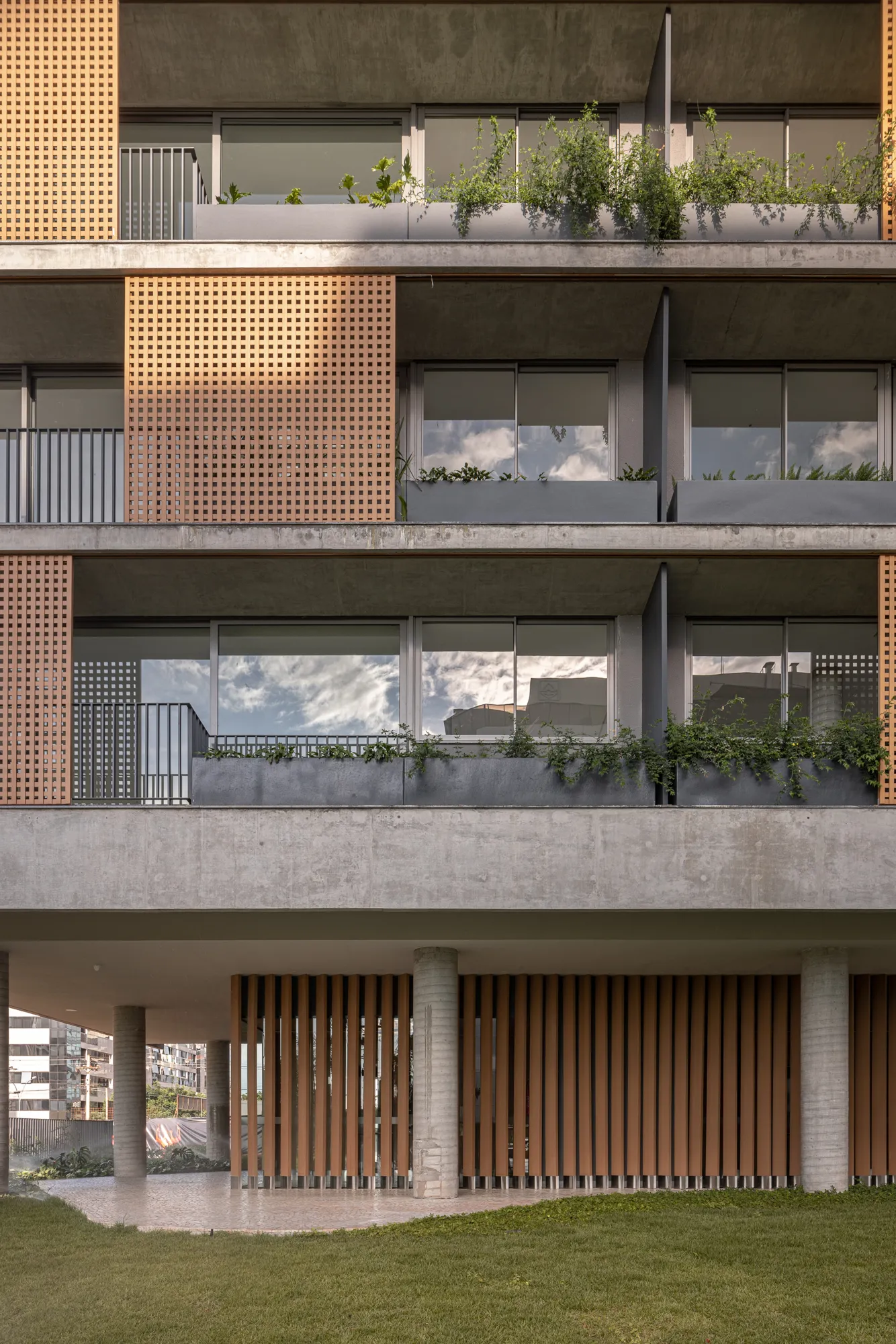 A fachada, viva e mutável, reflete a vida que se desenrola dentro e fora do prédio. Varandas contínuas e vegetação integrada resgatam o equilíbrio entre natureza e habitação — um gesto que ecoa os cinco princípios da arquitetura moderna, atualizados para os desafios e desejos de hoje.