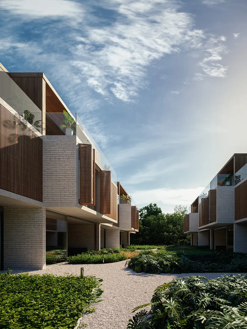 Cada unidade foi pensada como uma casa vertical, com acesso direto e varandas generosas, promovendo uma experiência de moradia urbana mais íntima e integrada à paisagem.