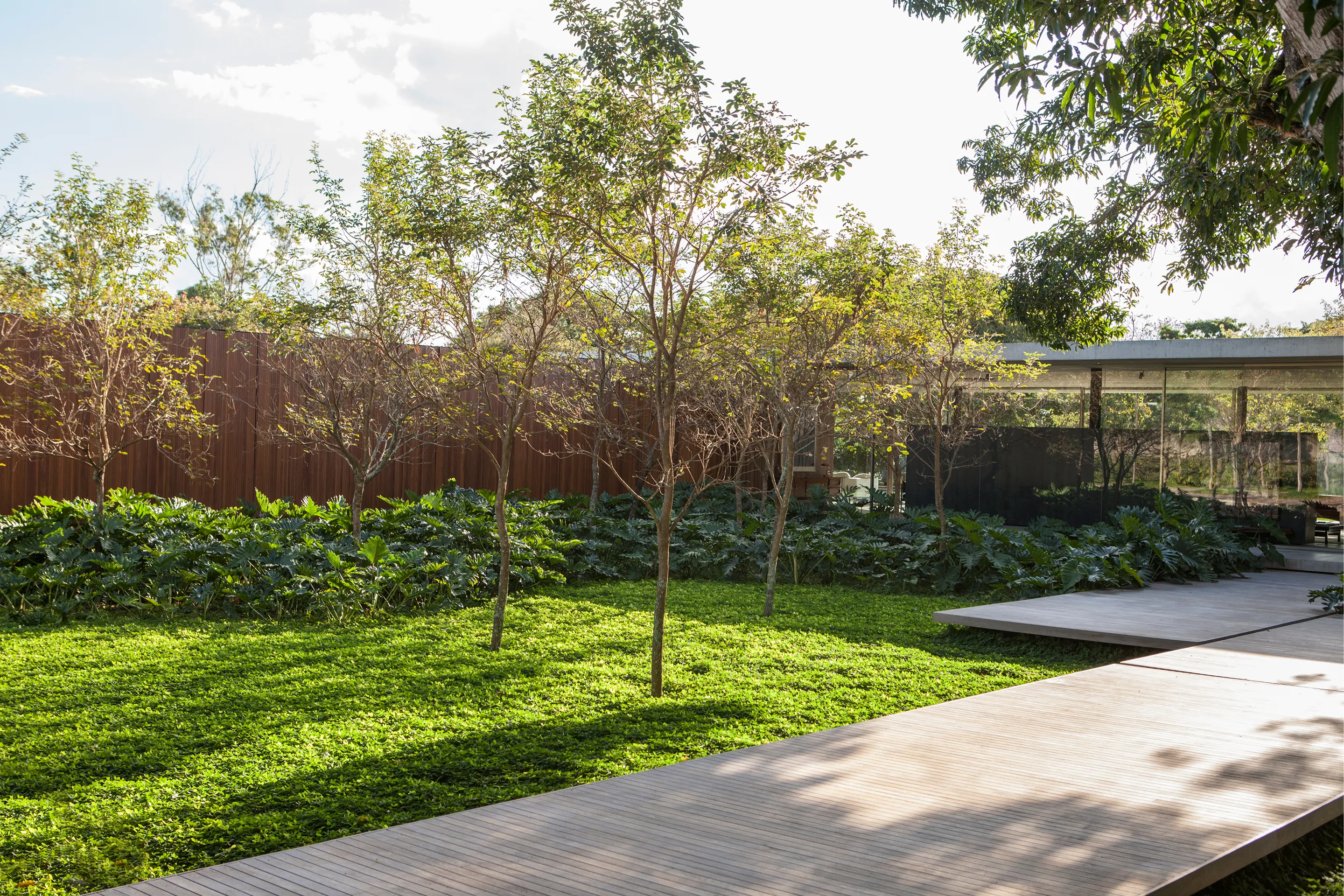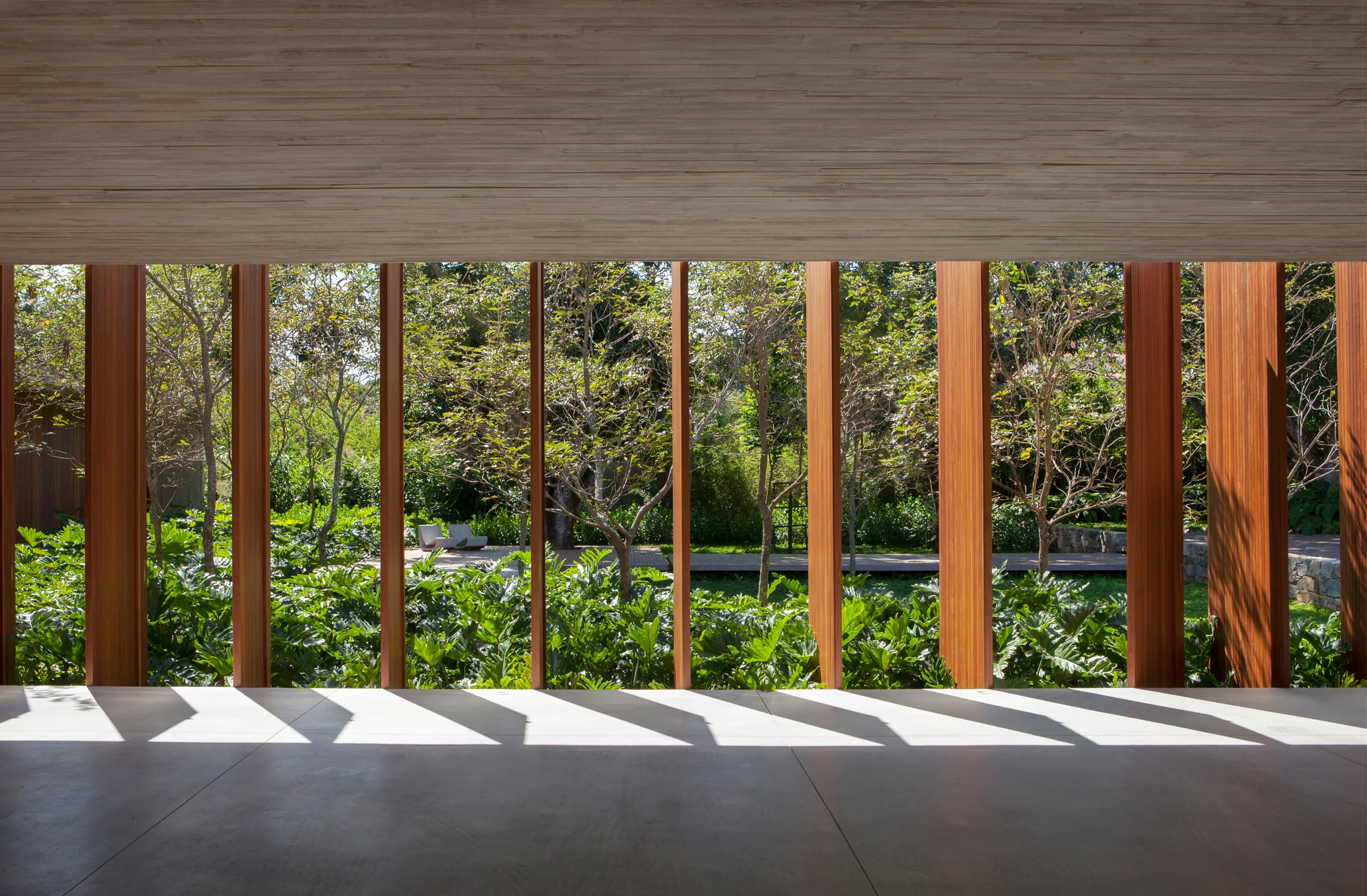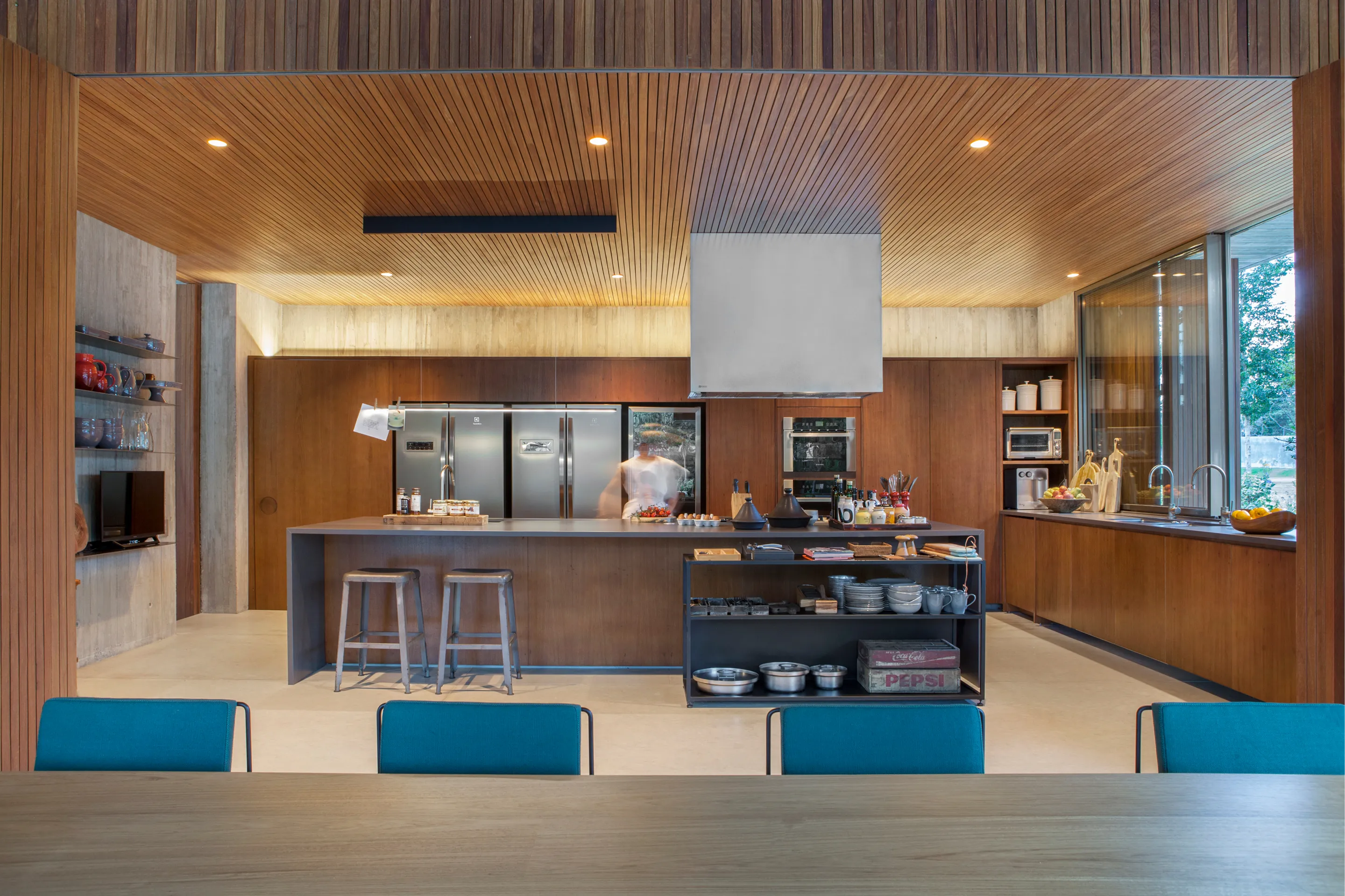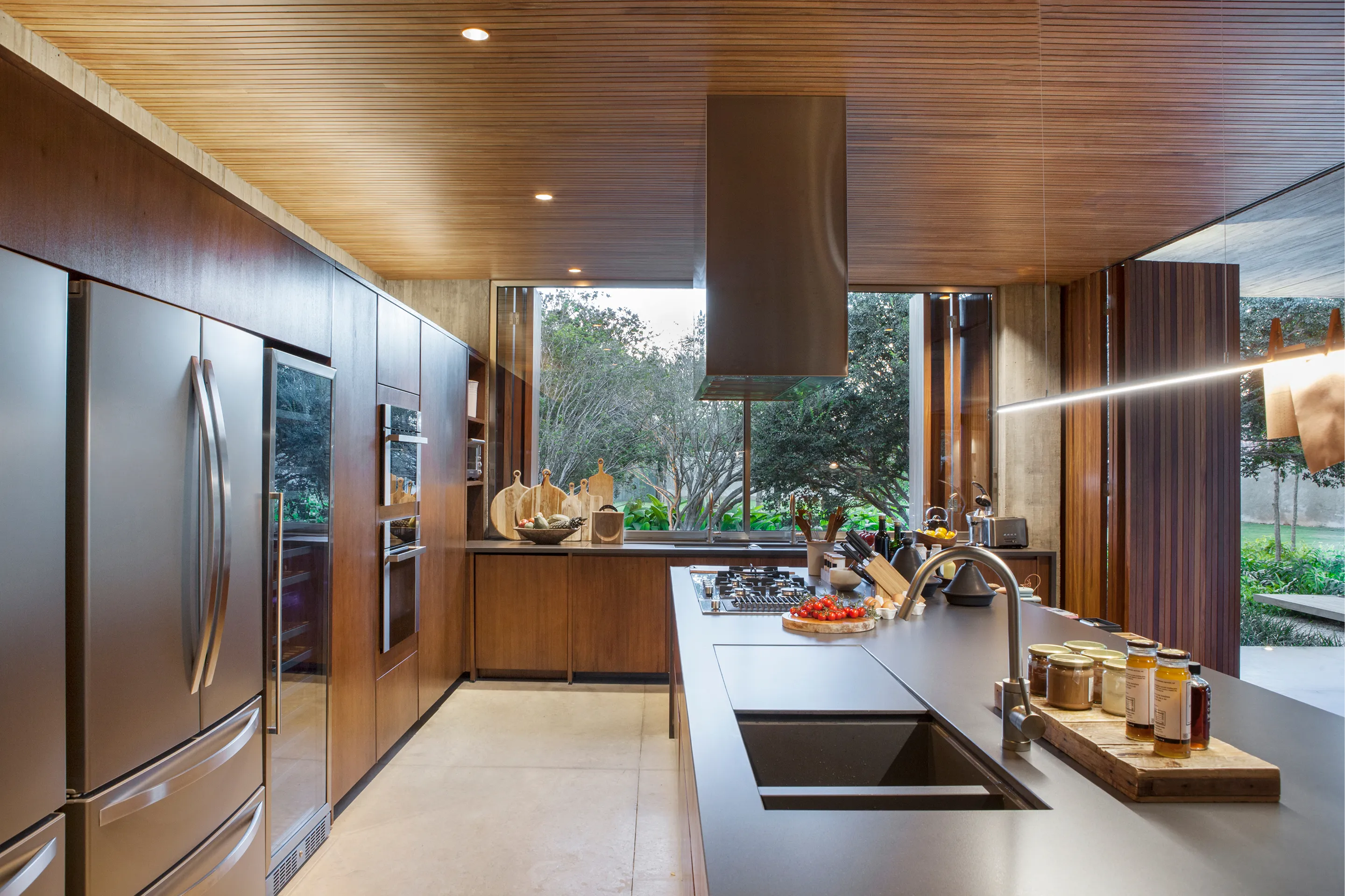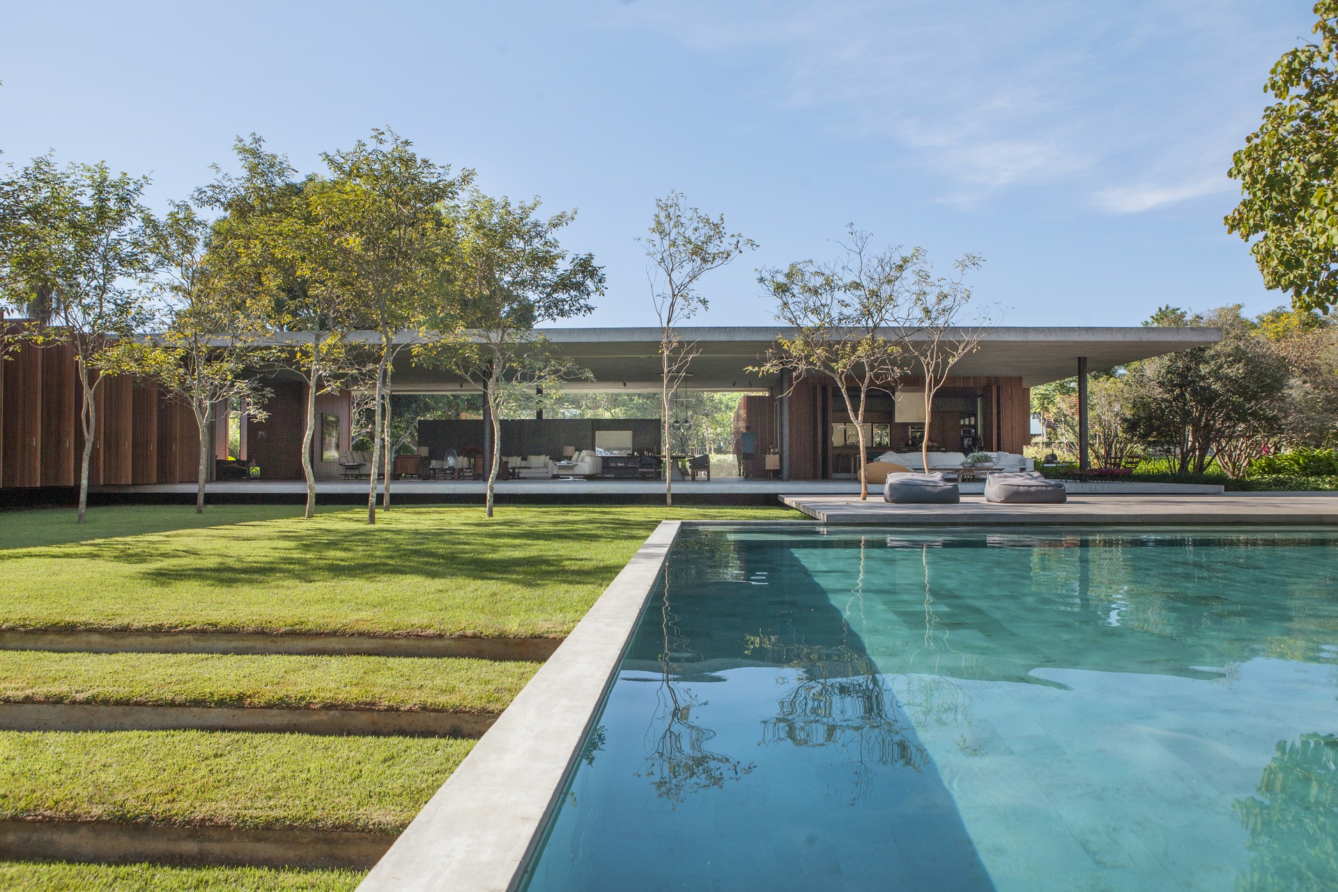 O uso de volumes com geometria pura permitiu que o projeto alcançasse uniformidade e racionalidade em seu layout, distribuindo a casa em três blocos principais: serviço, social e privativo. Além disso, o uso consistente de concreto e madeira proporcionou maior unidade ao desenho.