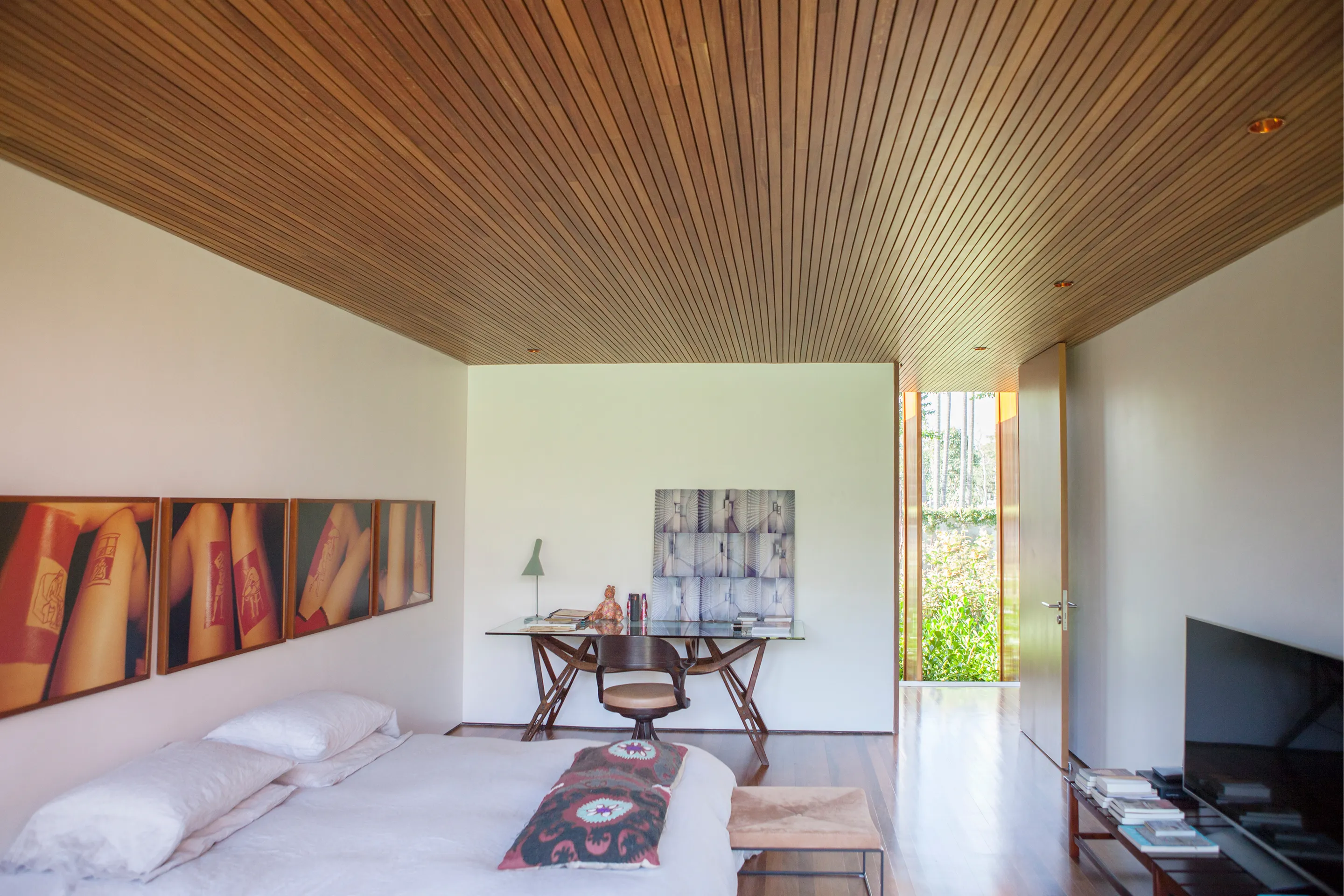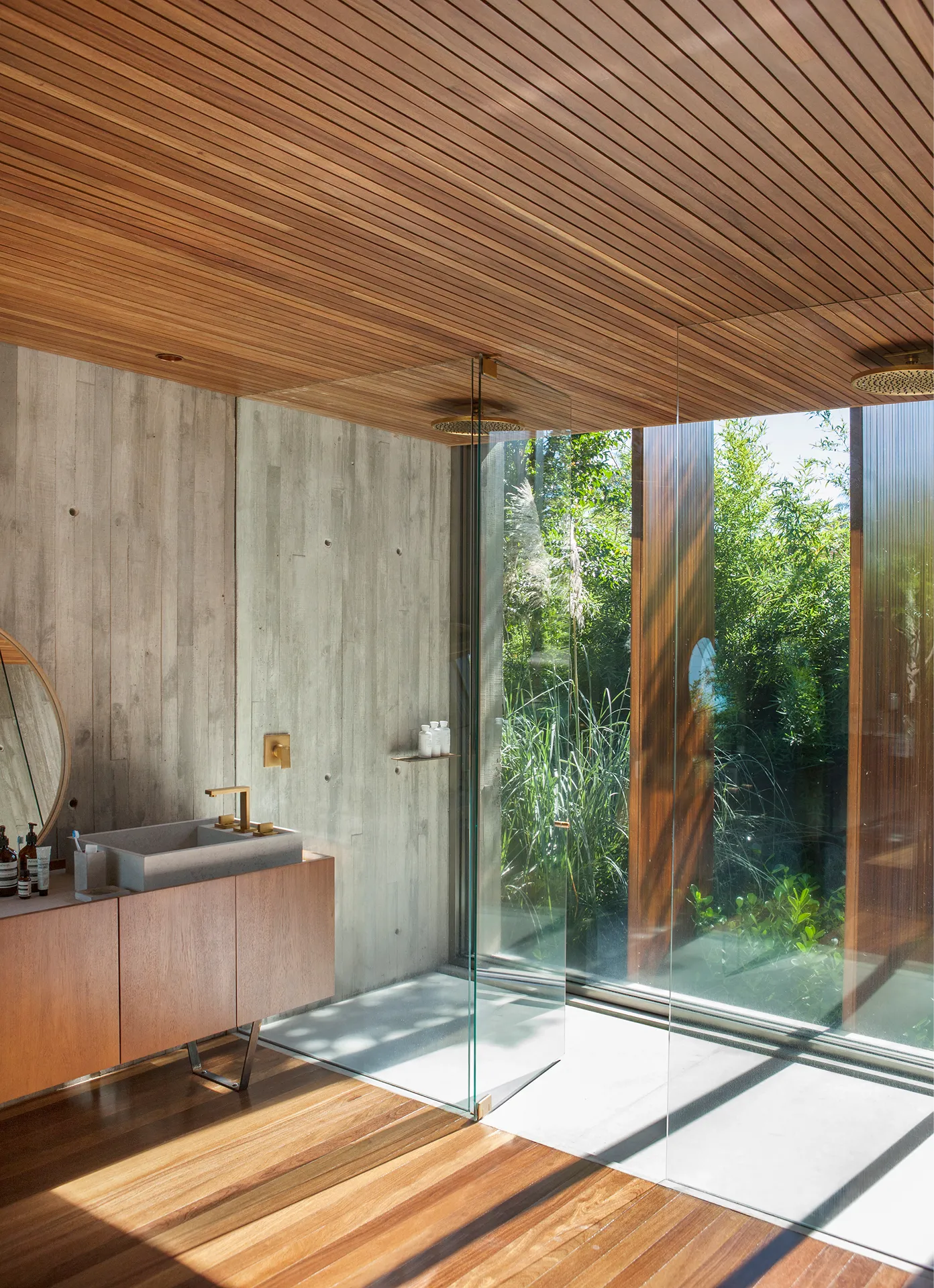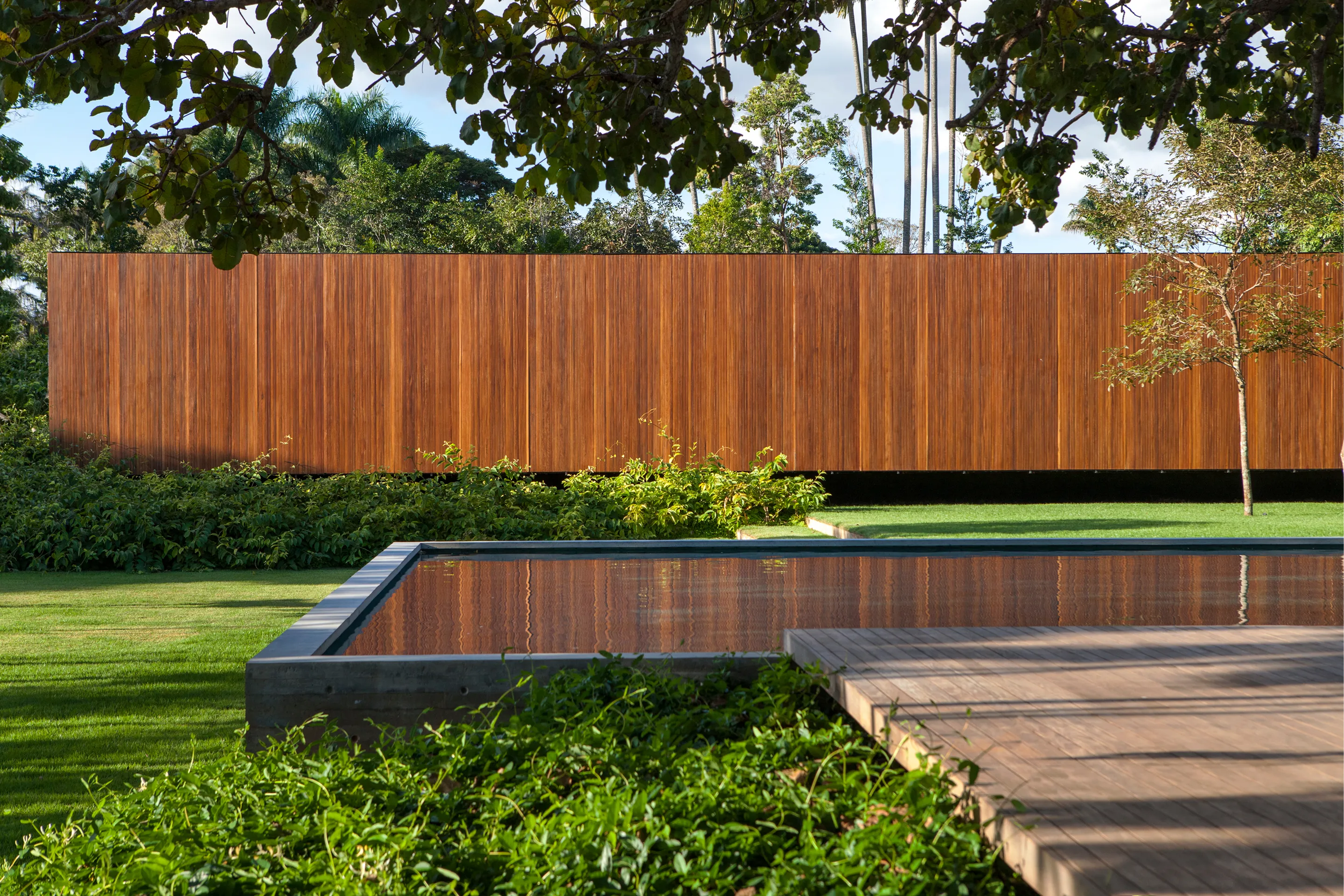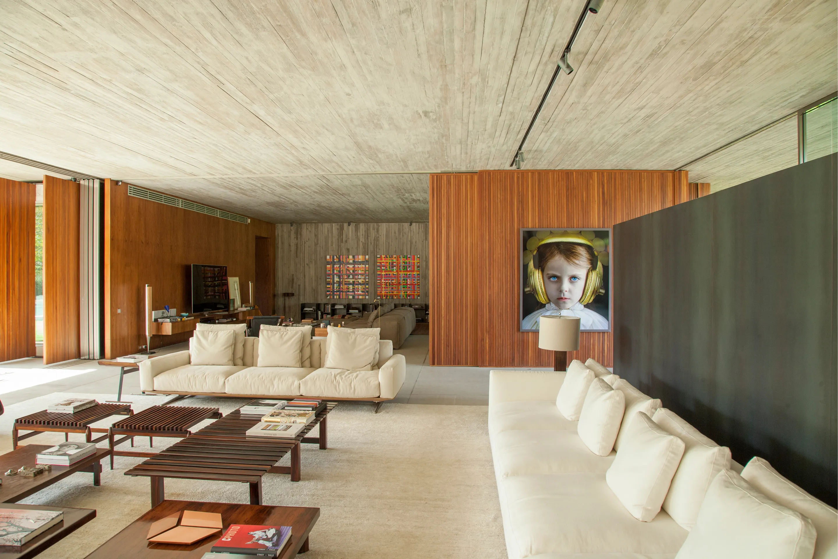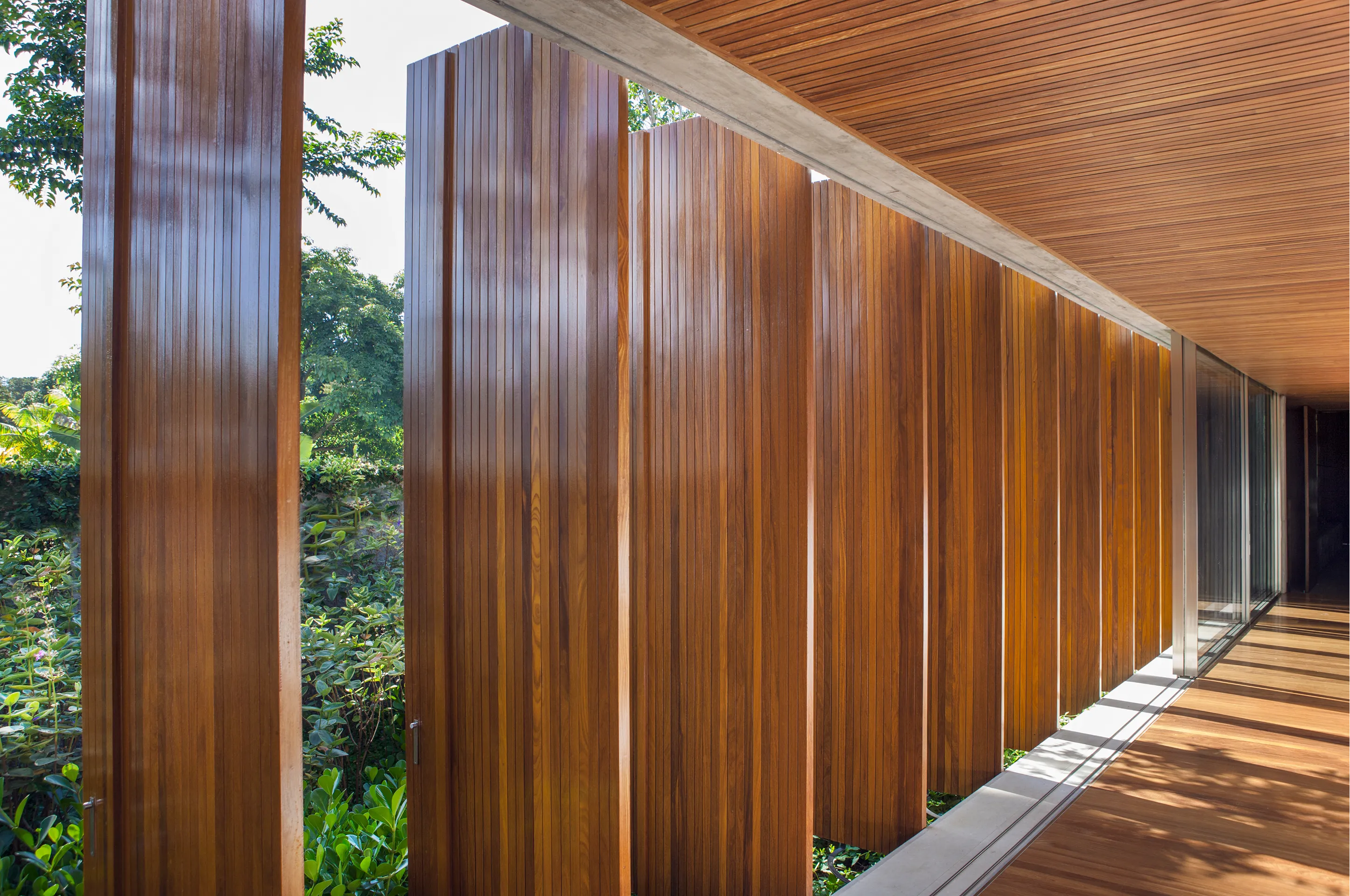O uso de volumes com geometria pura permitiu que o projeto alcançasse uniformidade e racionalidade em seu layout, distribuindo a casa em três blocos principais: serviço, social e privativo. Além disso, o uso consistente de concreto e madeira proporcionou maior unidade ao desenho.