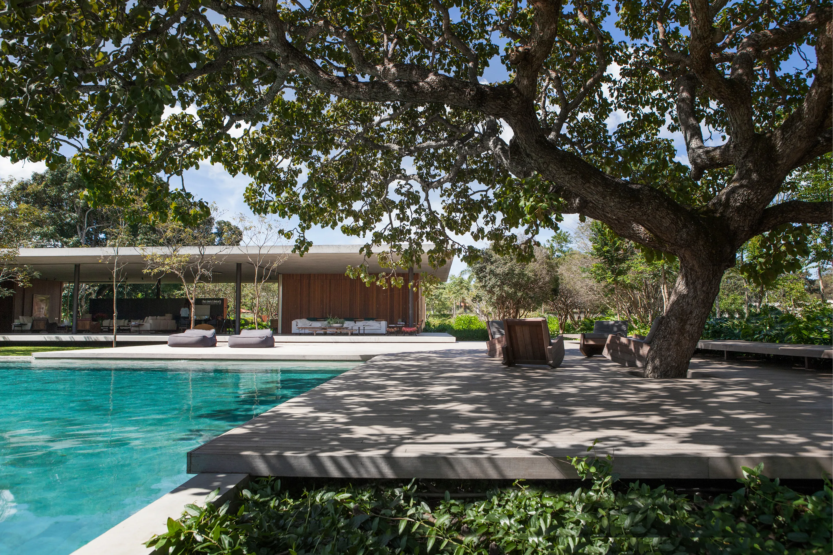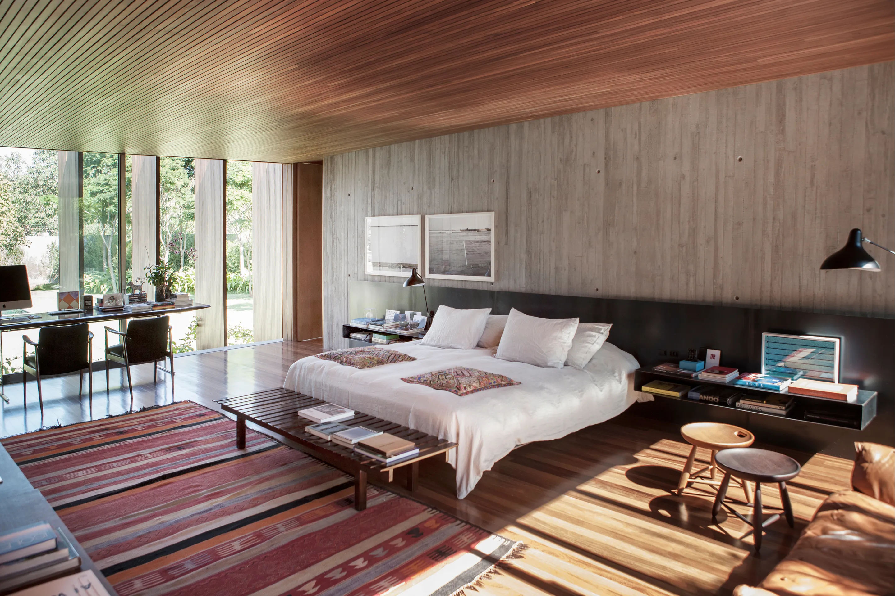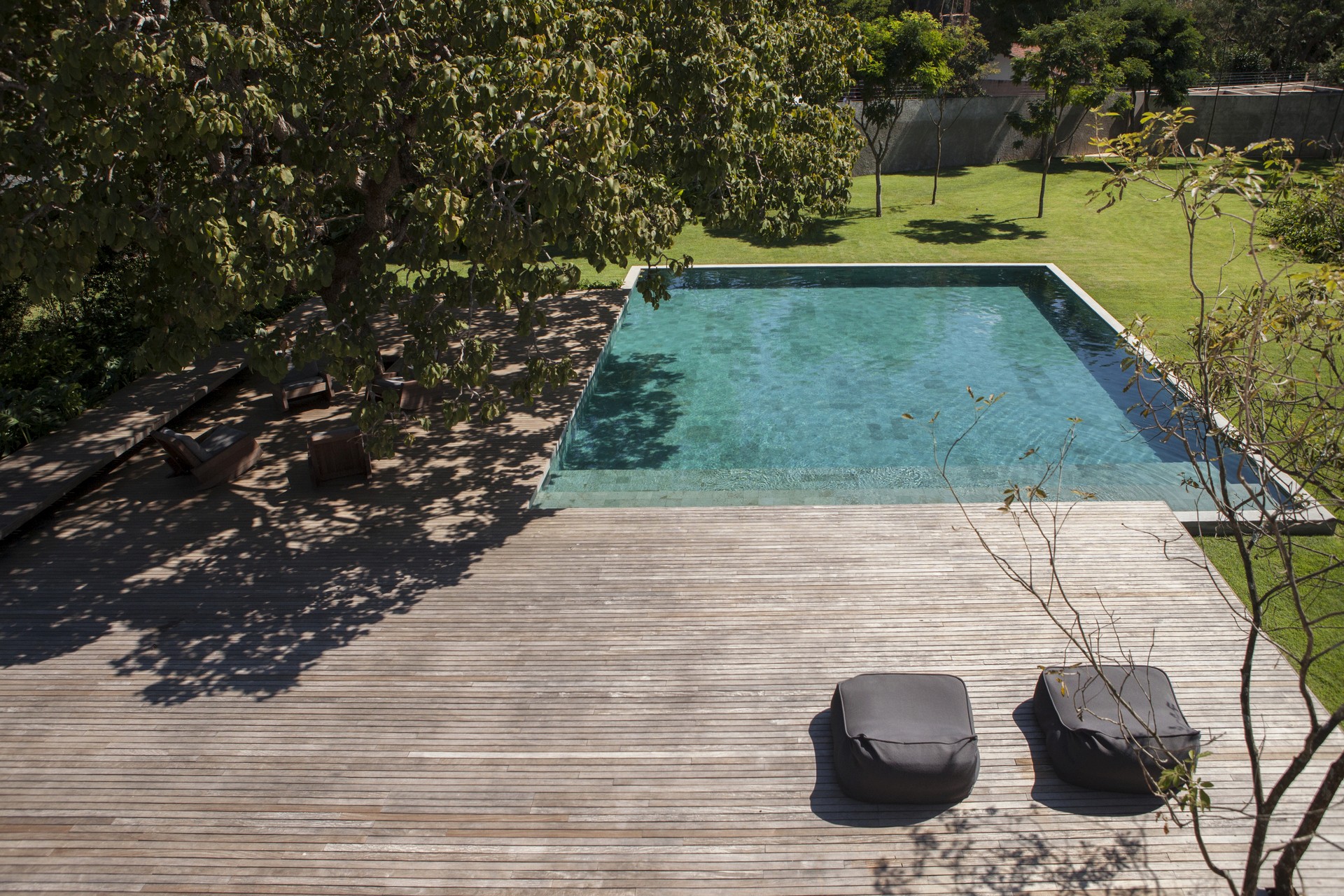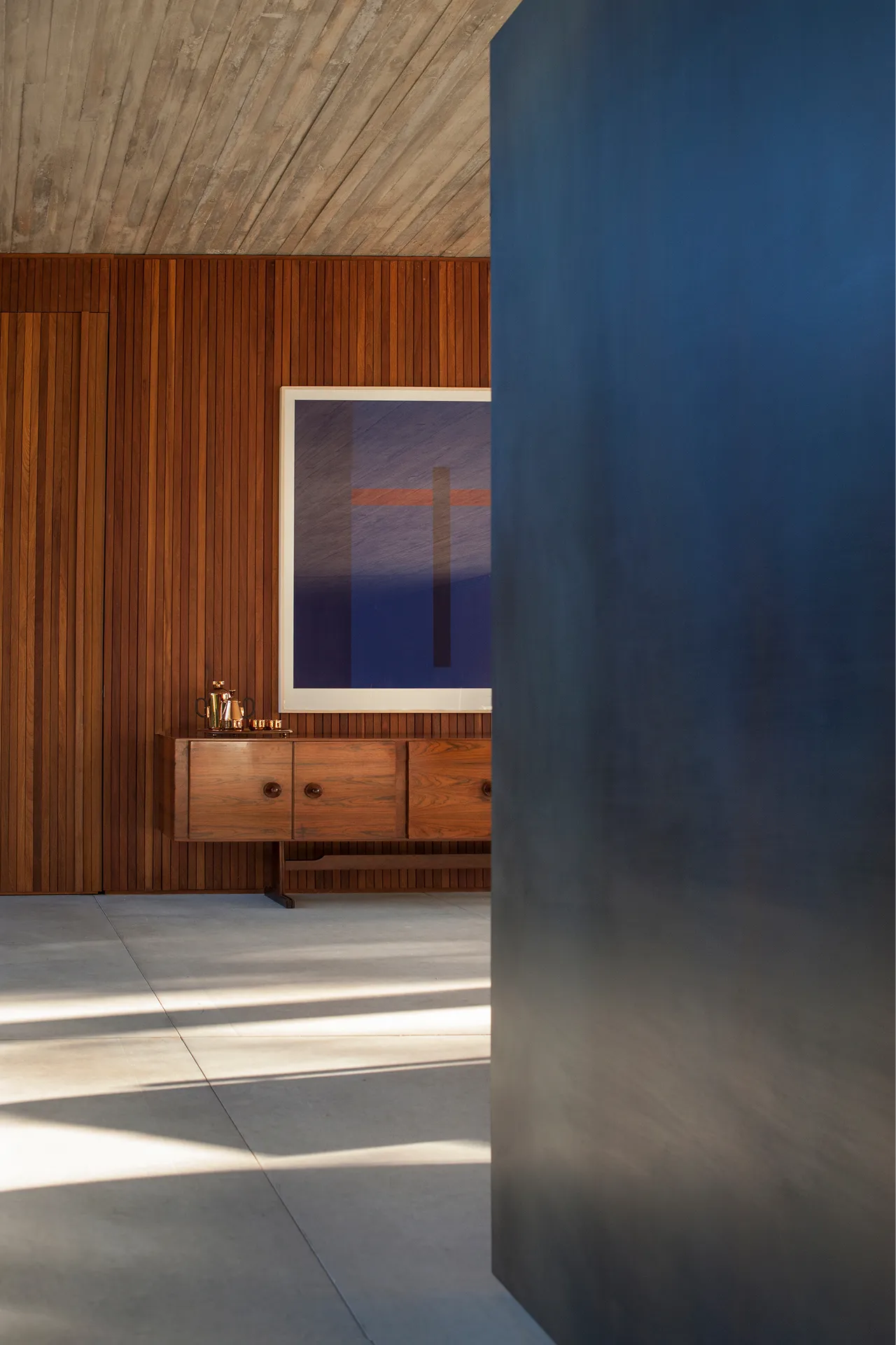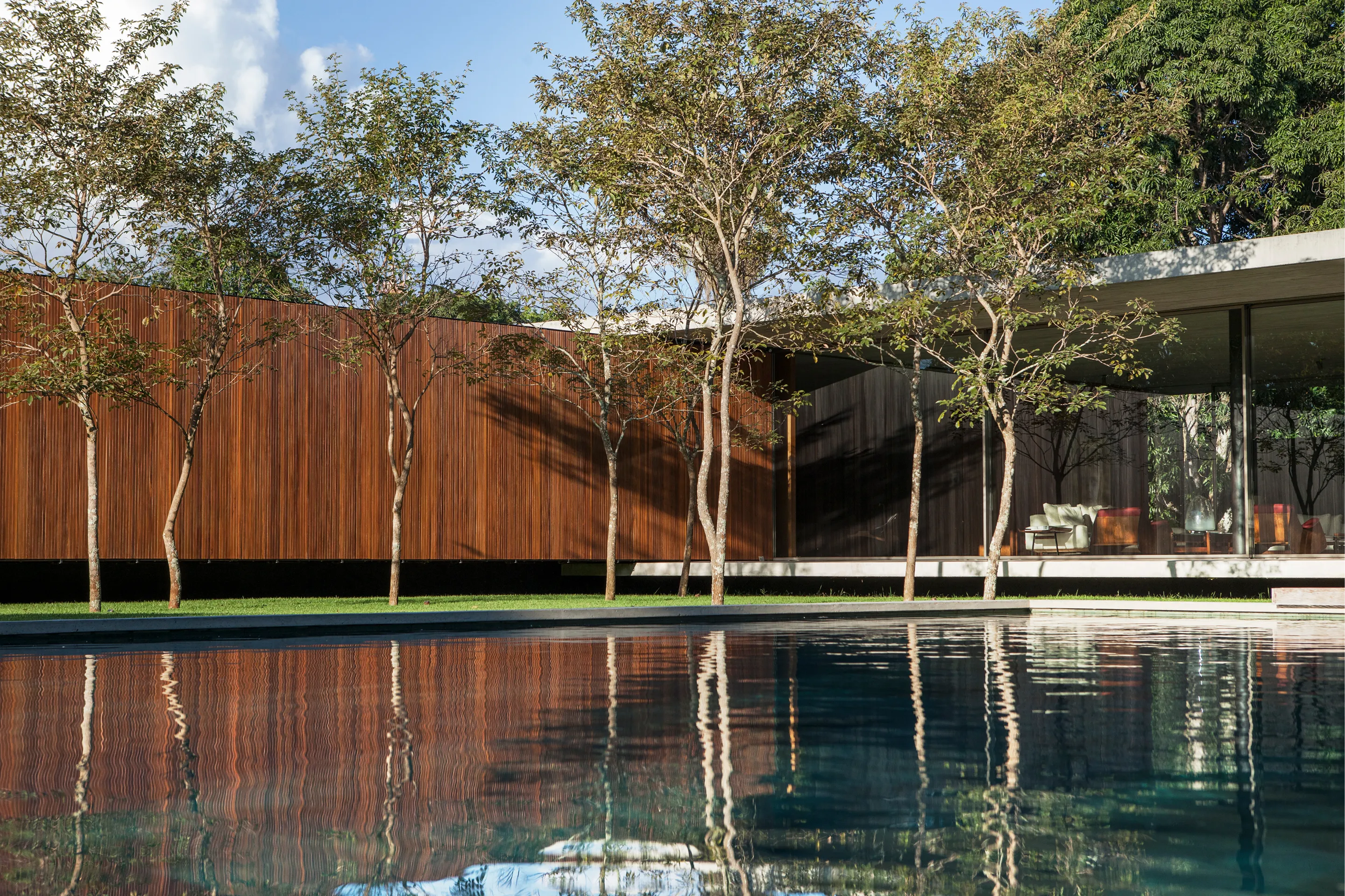O uso de volumes com geometria pura permitiu que o projeto alcançasse uniformidade e racionalidade em seu layout, distribuindo a casa em três blocos principais: serviço, social e privativo. Além disso, o uso consistente de concreto e madeira proporcionou maior unidade ao desenho.