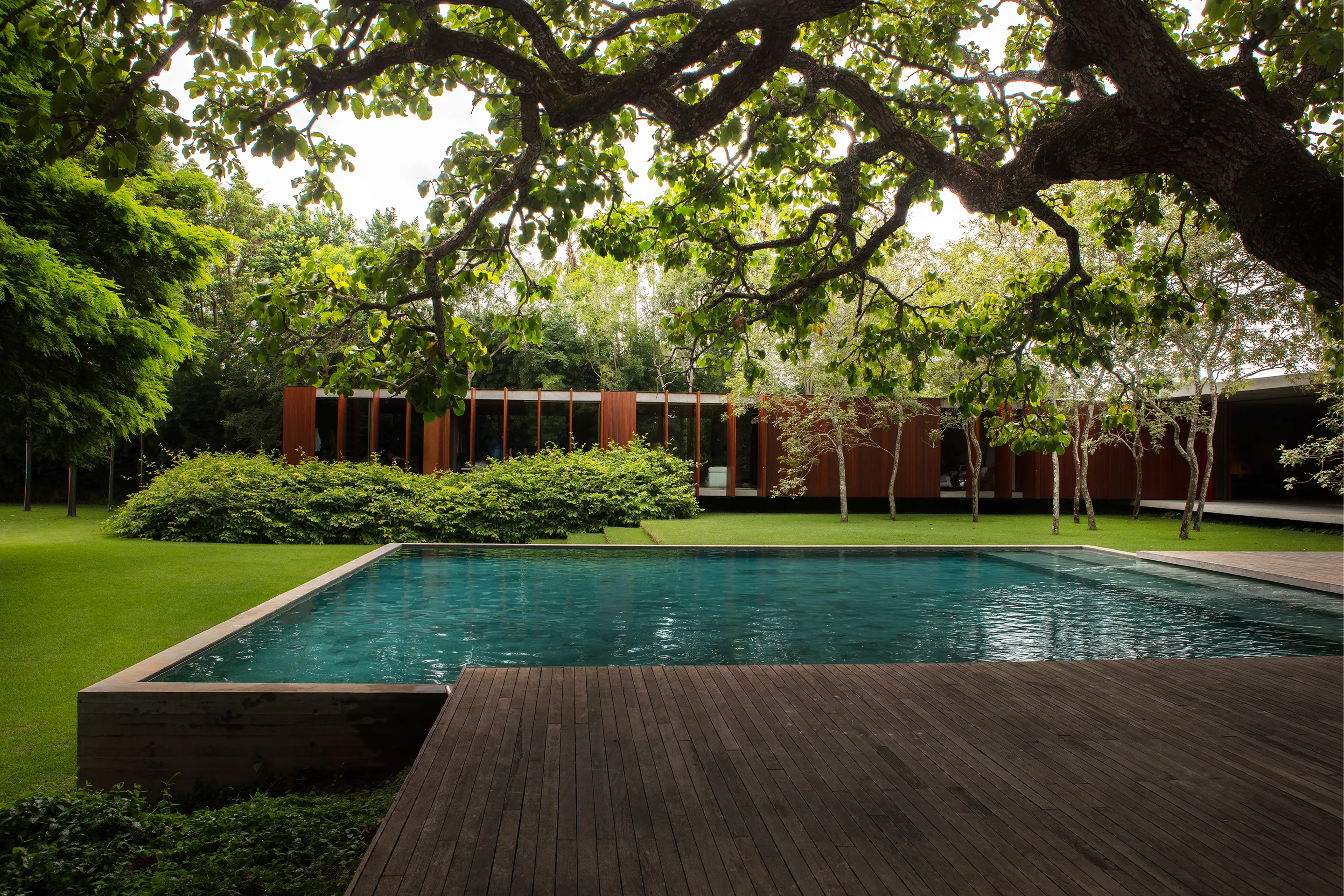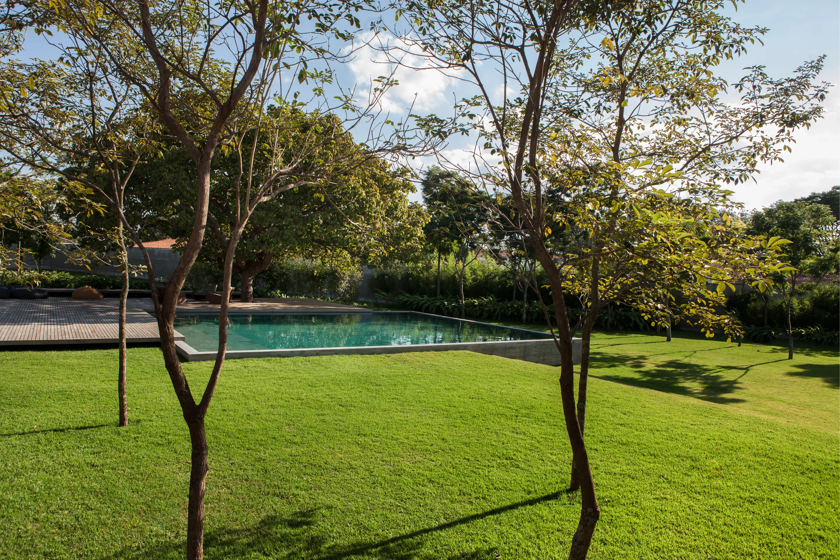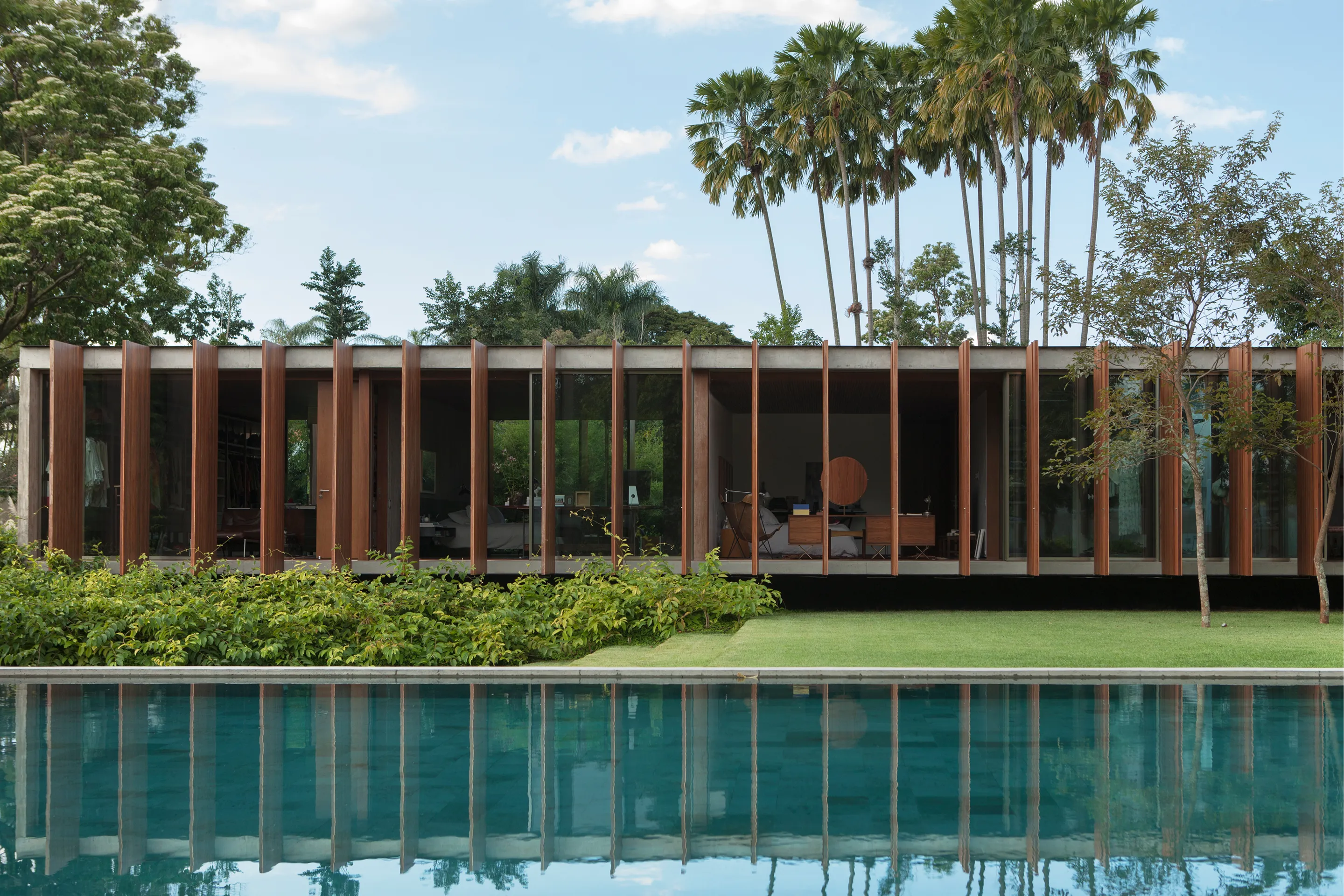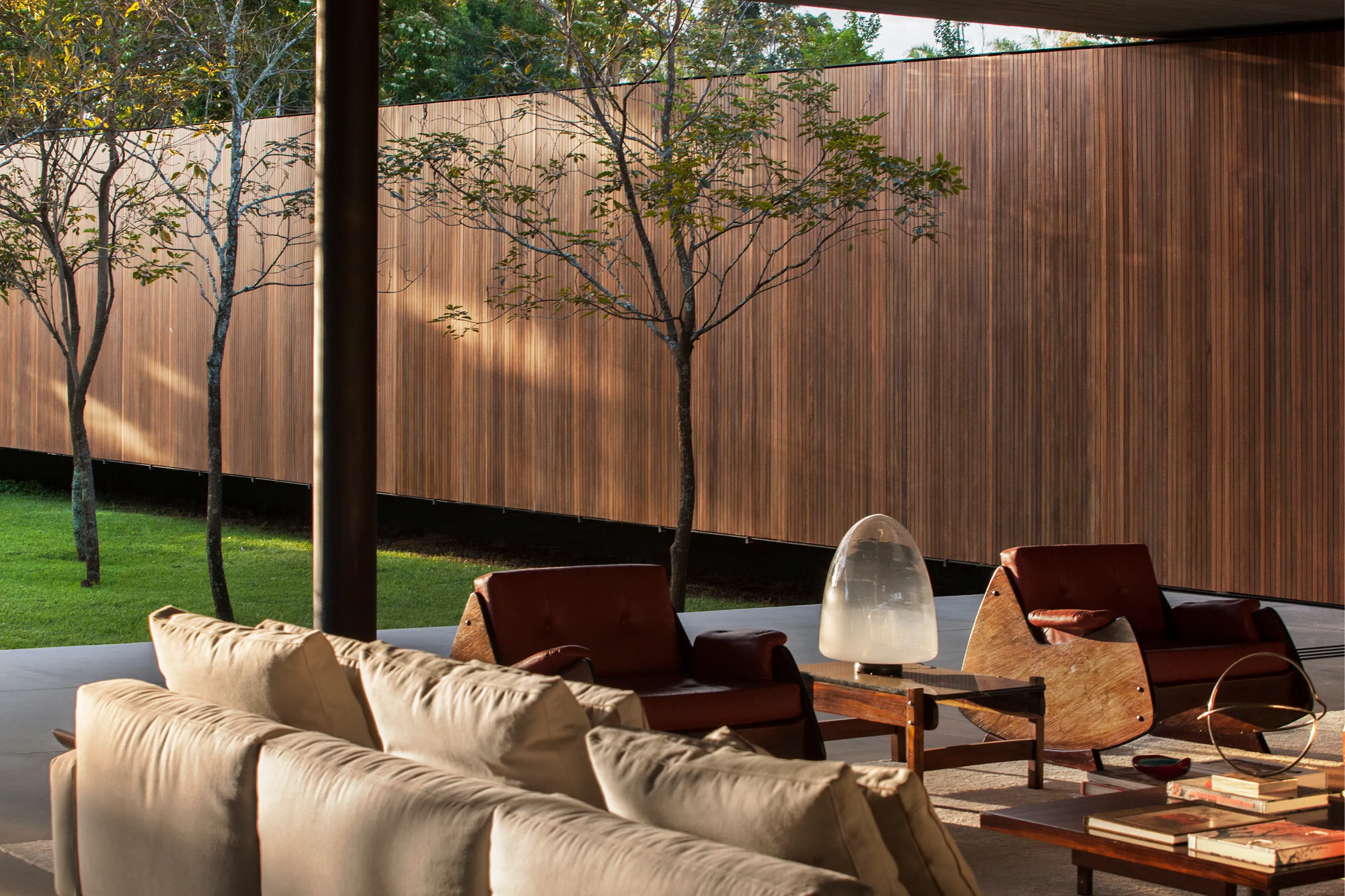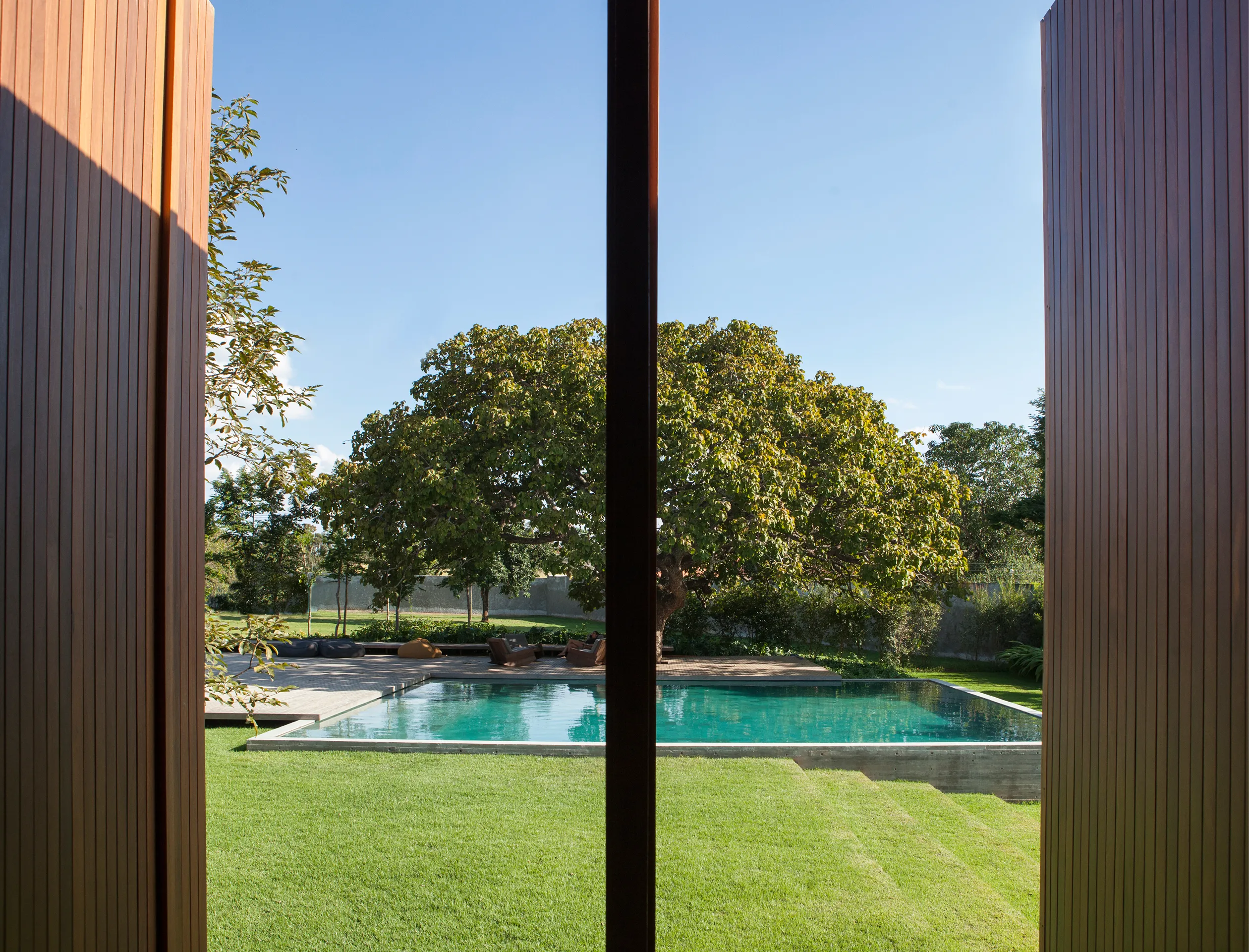 O uso de volumes com geometria pura permitiu que o projeto alcançasse uniformidade e racionalidade em seu layout, distribuindo a casa em três blocos principais: serviço, social e privativo. Além disso, o uso consistente de concreto e madeira proporcionou maior unidade ao desenho.