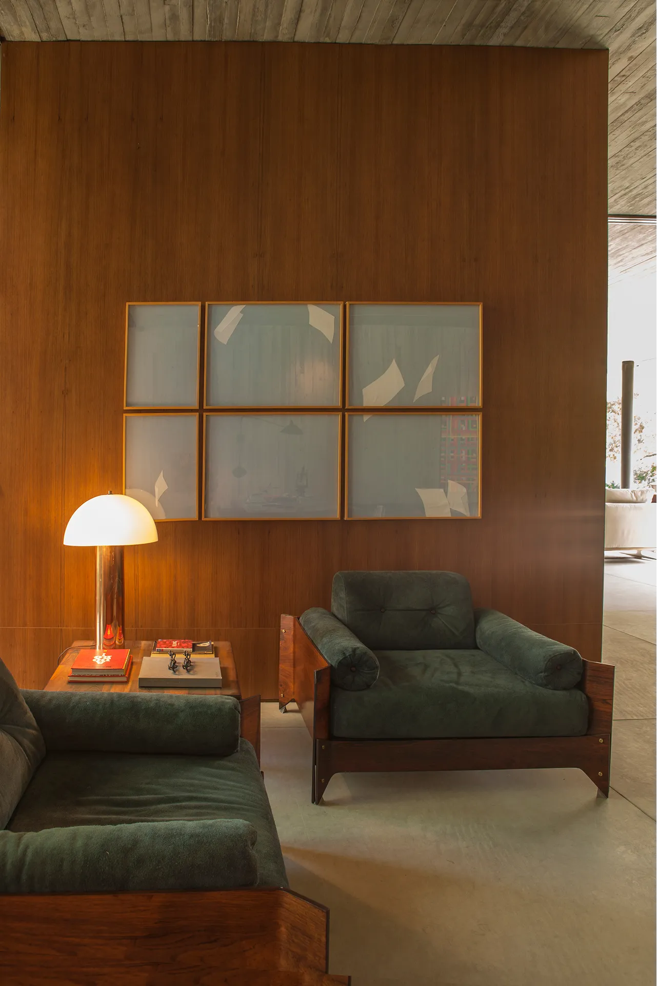 O interior, marcado por escolhas pessoais (antiguidades, peças selecionadas durante viagens, arte da família), ganhou uma atmosfera refinada complementada por mobiliário italiano, como os sofás da Flexform usados na sala de estar. A seleção cuidadosa de cada peça, cada obra e cada ornamento confere ao projeto uma singularidade importante.